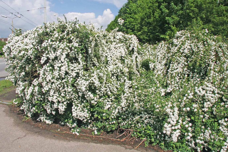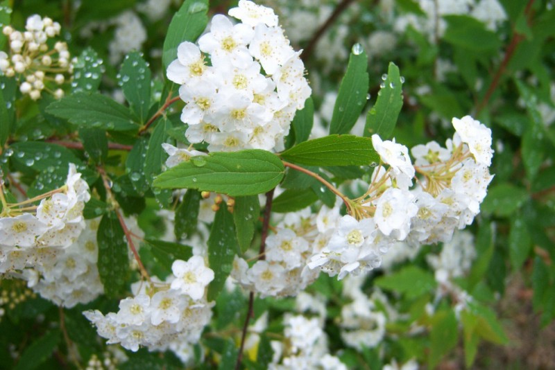 Port buissonnant, en forme de fontaine; branches arquées; écorce brun marron.